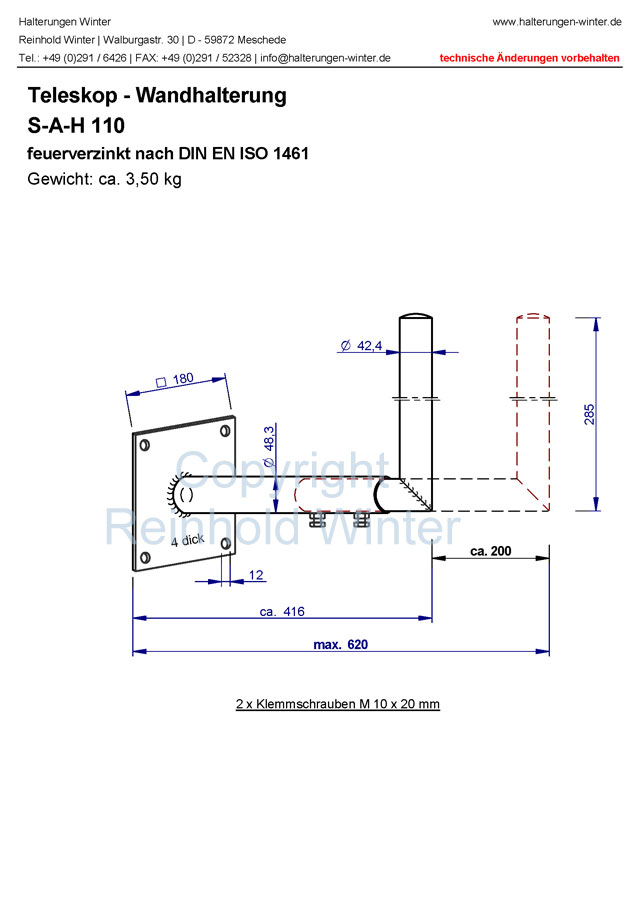 Stahl Wandhalterung S-A-H 110