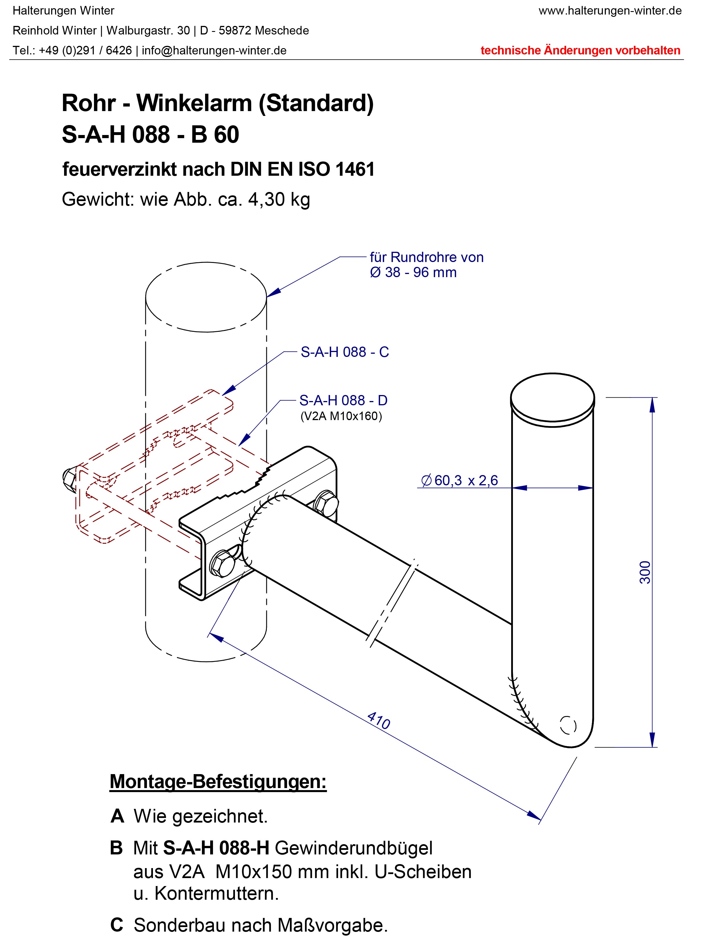 Rohr-Winkelarm S-A-H 088 - B 60