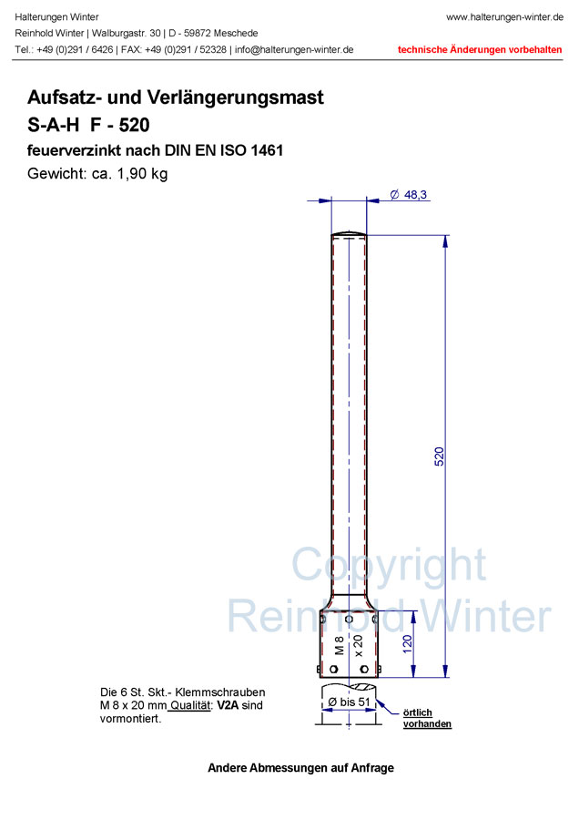 Aufsatz- und Verlängerungsmast S-A-H F - 520